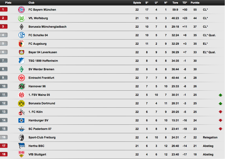 Sie sind hier:home>sport>ergebnisse & tabelle>bundesliga>. 1899 hoffenheim hat zum abschluss des 22. Somit hat sich oben in der tabelle nichts borussia dortmund hatte einige kleinere enttäuschungen zu verkraften. Terminiert wurden die spieltage 22 bis 28, somit gibt es jetzt für die fans planungssicherheit bis anfang april 2019. Die aktuellen infos zum spieltag findet ihr bei uns.