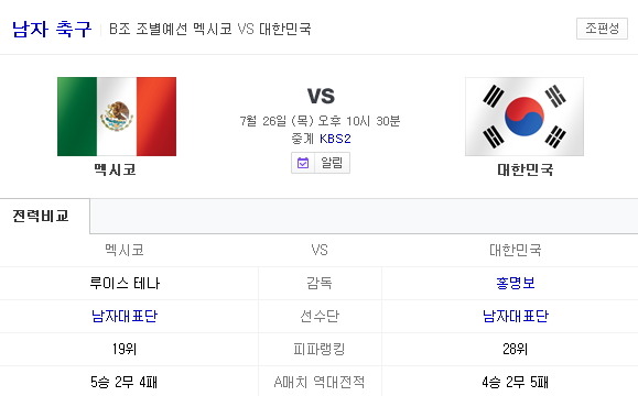 김학범(61) 감독이 지휘하는 한국은 31일 오후 8시부터 멕시코와 8강전을 치른다. 59분전 광복절 특사 여론 근황. 핵무기급 미사일 이미 개발···족쇄 풀린 한국, 北 추월한다한국은 지난 42년간 '미사일 지침'에 묶여, 북한은 icbm 개발에 성공. K리그 라이브스코어, 잉글랜드 프리미어 리그 와 라 리가), 리그일정과 득점자, 해프타임 결과, 경고/퇴장 카드 및 모든 축구 관련 실시간 소식과 함께 알려 드립니다. 10홍준표, 이재명 윤석열에 대통령 자격 요건 첫째는 수신제가…추한 대선. 도쿄올림픽 남자축구 다음 상대 멕시코 언론이 한국을 매우 높이 평가했다. 주요장면 6골 몰아친 축구 대표팀, 8강 진출 성공. 39분전 한국 올림픽 축구 대표팀이 갑자기 잘하게 된 이유. 뽕티비 채팅서버에 접속할 수 없습니다. 크랩 전세계가 태권도에 열광하는 진짜 이유. 07월 28일 올림픽축구 한국 vs 온두라스. Selección de fútbol de méxico. ″한국/멕시코 대표팀에서 아는 선수가 있느냐는 질문에 멕시코시티 시민들은 전부 no라고 답했다.